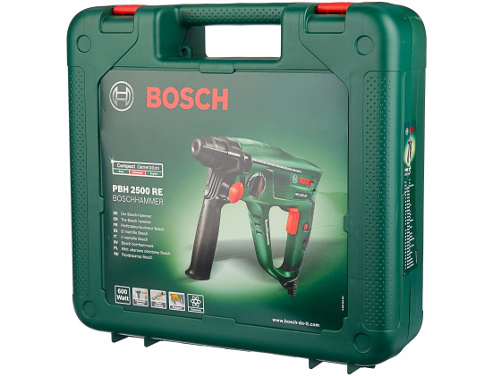 Комплектация - боковая рукоятка, ограничитель глубины сверления, кейс