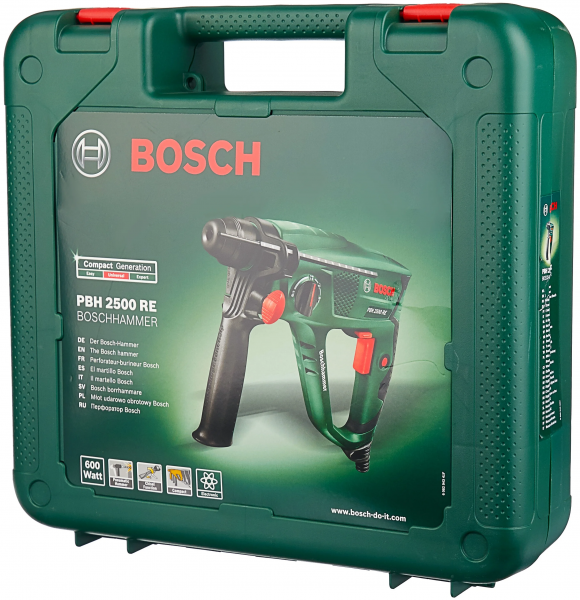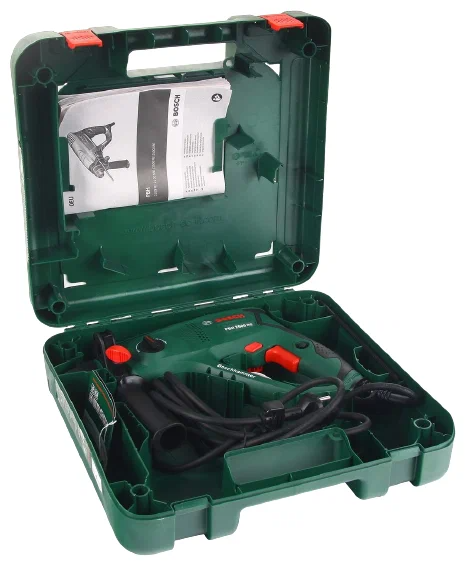 Комплектация - боковая рукоятка, ограничитель глубины сверления, кейс