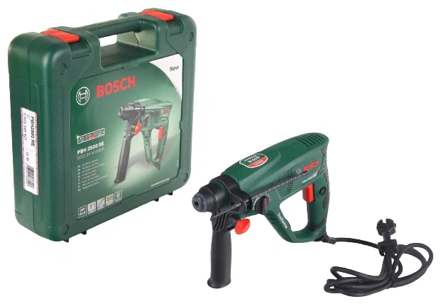 В комплекте - кейс, дополнительная рукоятка, ограничитель глубины сверления