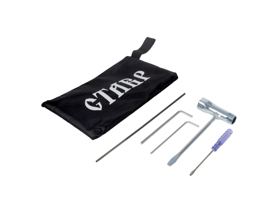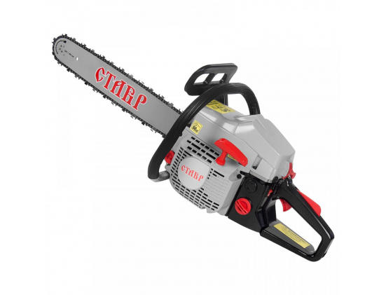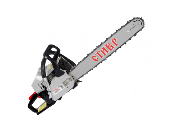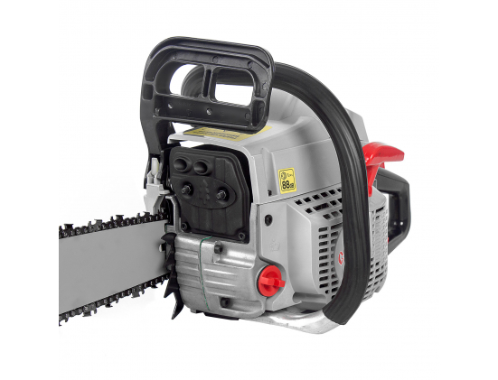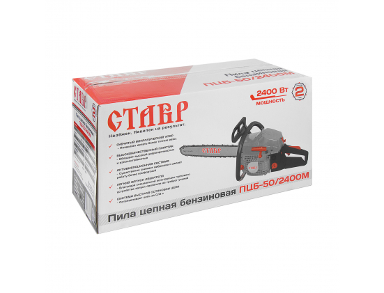 Комплектация: шина, цепь, отвертка, свечной ключ, шестигранный ключ 2шт., напильник, защитный чехол шины, чехол для инструмента, емкость для приготовления смеси (бензин+масло)