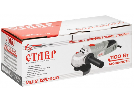 Комплектация - защитный кожух, ключ от фланца, дополнительная рукоятка, запасной комплект угольных щеток