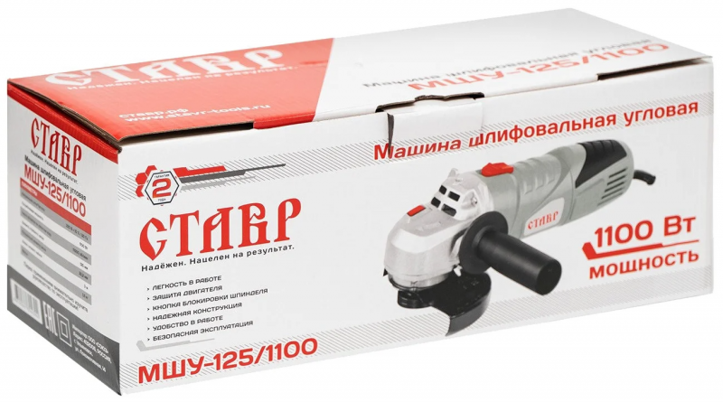 Комплектация - защитный кожух, ключ от фланца, дополнительная рукоятка, запасной комплект угольных щеток