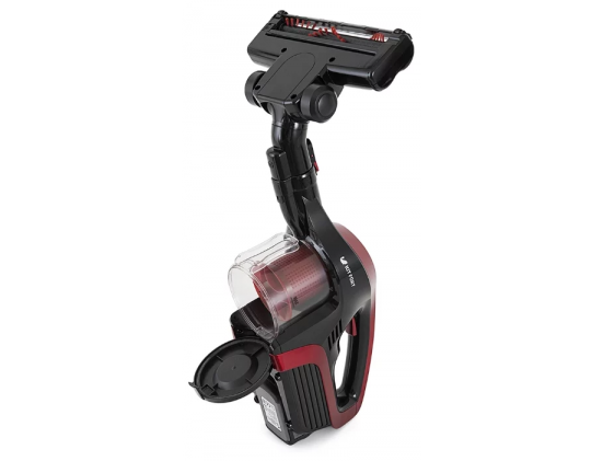 Вертикальная конструкция позволяет с удобством пользоваться моделью в узких коридорах и в помещениях с плотной меблировкой. Устройство оснащено герметичной ёмкостью (0,30 л) для сбора мелкого мусора. После использования его содержимое достаточно вытряхнуть, а контейнер промыть под проточной водой.