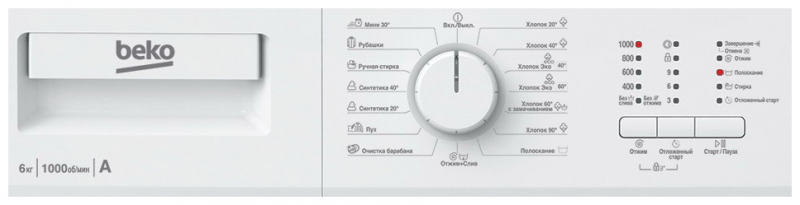 | Максимальная скорость отжима | 1000 об/мин |