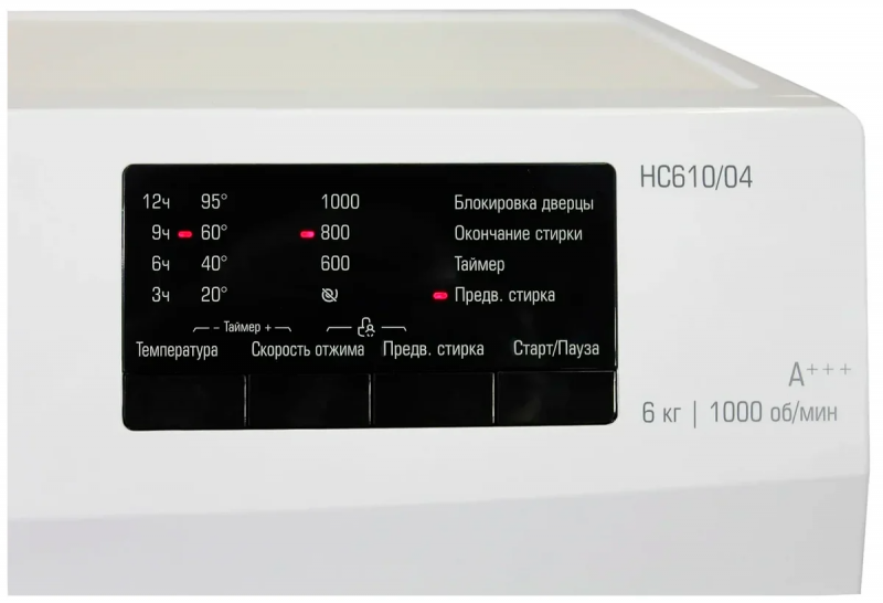 Максимальная загрузка белья - 6 кг