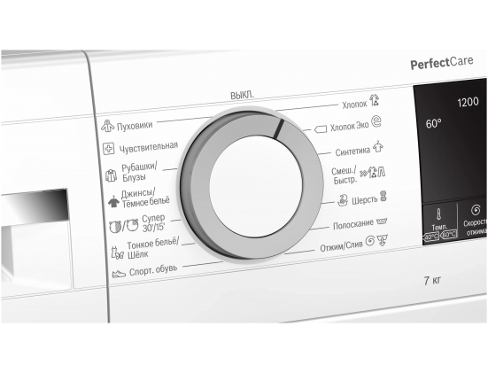 Максимальная загрузка белья - 7 кг