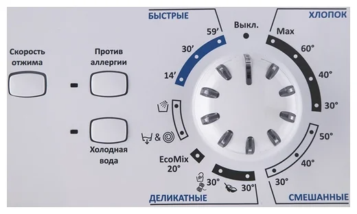 Программы - отмена отжима, стирка деликатных тканей, стирка смешанных тканей, стирка шерсти, экономичная программа, предварительная стирка, быстрая стирка