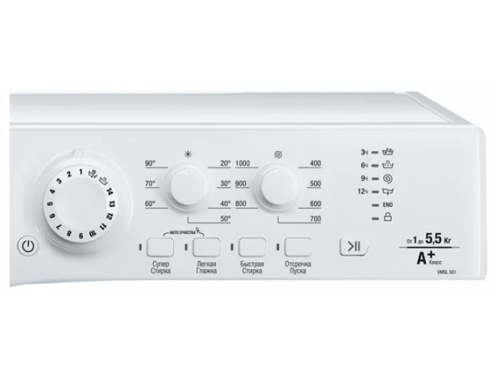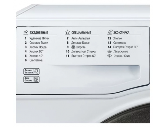 Специальные программы - стирка деликатных тканей, экономичная стирка, предотвращение сминания, стирка детской одежды, быстрая стирка, предварительная стирка, программа удаления пятен