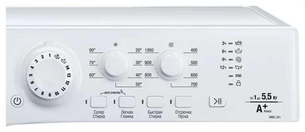 Специальные программы - стирка деликатных тканей, экономичная стирка, предотвращение сминания, стирка детской одежды, быстрая стирка, предварительная стирка, программа удаления пятен
