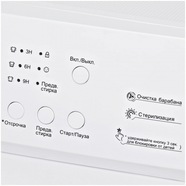 Дополнительные функции - выбор скорости отжима, выбор температуры стирки, контроль баланса, контроль за уровнем пены, отложенный старт, сигнал окончания стирки
