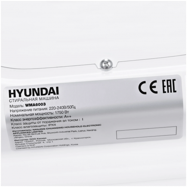 Максимальная загрузка белья - 6 кг