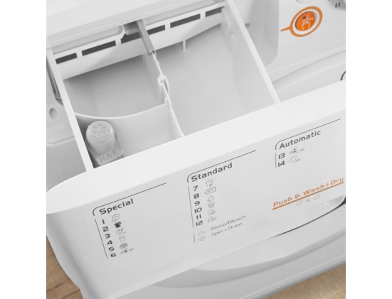 Специальные программы - стирка деликатных тканей, экономичная стирка, стирка черных вещей, стирка спортивной одежды, замачивание, предварительная стирка