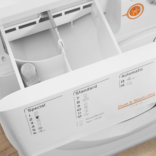 Специальные программы - стирка деликатных тканей, экономичная стирка, стирка черных вещей, стирка спортивной одежды, замачивание, предварительная стирка
