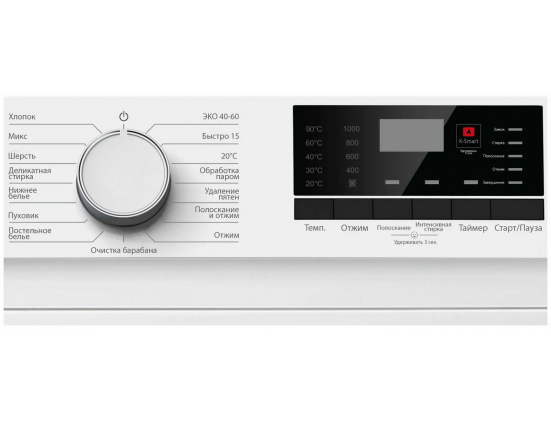 Программы - быстрая стирка, дополнительное полоскание, ежедневная стирка, замачивание, интенсивная стирка, отжим, полоскание, ручная стирка, стирка деликатных тканей, стирка детских вещей, стирка пуховых вещей, стирка синтетики, стирка смешанных тканей, стирка хлопка, стирка черных вещей, стирка шерсти, удаление пятен, экономичная программа, Полоскание + отжим, Слив, обработка паром, отжим, полоскание