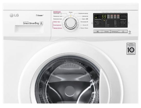 Максимальная загрузка белья - 6 кг