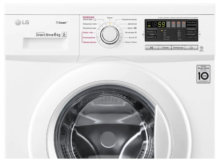 Максимальная загрузка белья - 6 кг