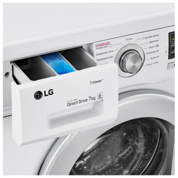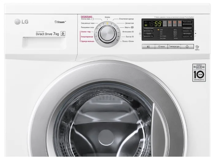 Специальные программы - стирка деликатных тканей, предотвращение сминания, стирка детской одежды, стирка спортивной одежды, программа стирки смешанных тканей, быстрая стирка, предварительная стирка, подача пара