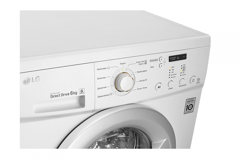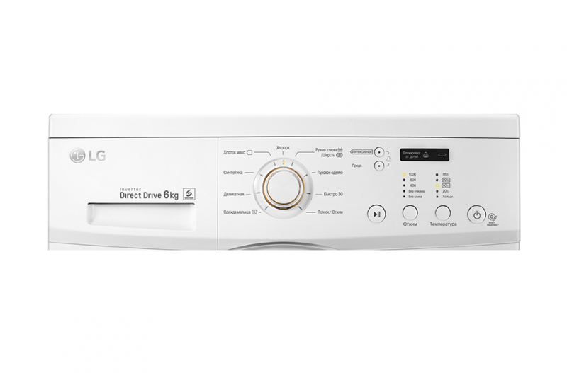Максимальная загрузка белья - 6 кг