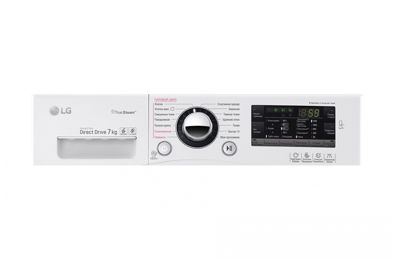 Специальные программы - стирка деликатных тканей, стирка черных вещей, стирка спортивной одежды, стирка пуховых вещей, программа стирки смешанных тканей, супер-полоскание, быстрая стирка, предварительная стирка, программа удаления пятен, подача пара