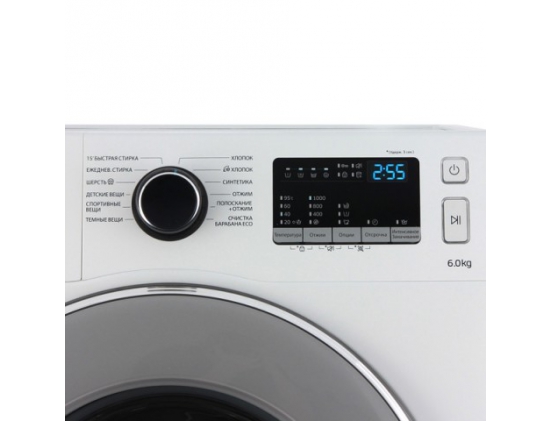 Максимальная загрузка белья - 6 кг