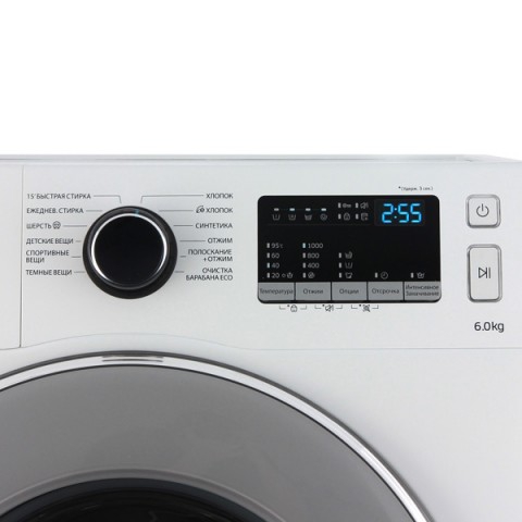 Максимальная загрузка белья - 6 кг