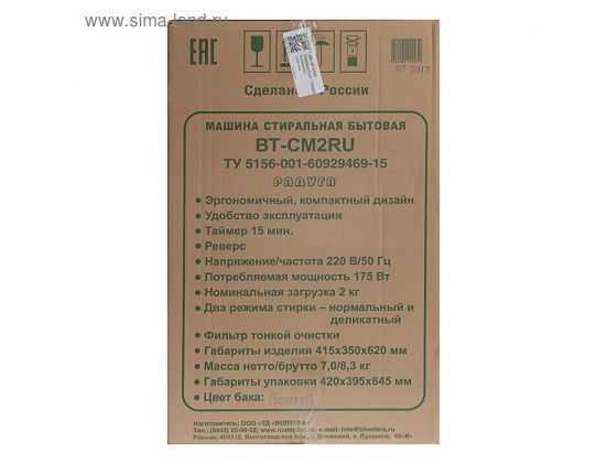 Дополнительная информация - реверсивный, поворотно-кратковременный режим работы при стирке; объем бака 23 литров; таймер стирки