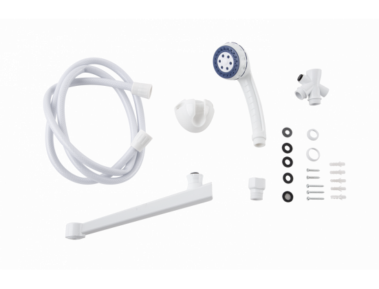 Комплектация - кран, душевая насадка, шланг для душа