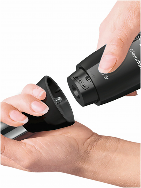 Дополнительная информация - работает без брызг благодаря специальной конструкции погружной части; аксессуары можно мыть в посудомоечной машине (погружную часть, чашу измельчителя, за исключением моторного блока и переходника)