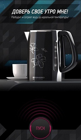 Этот стильный чайник оснащен технологией управления Ready for Sky, благодаря которой вы можете дистанционно управлять SkyKettle M170S-E с помощью мобильного телефона.