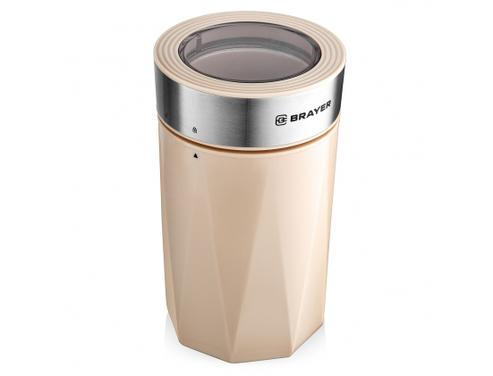 Кофемолка электрическая Brayer 1189BR вместительностью 60 г имеет ротационный нож из нержавеющей стали. У нее предусмотрен 1 основной режим работы и импульсный. Управлять работой кофемолки удобно нажатием на одну кнопку. Продолжительность рабочего цикла составляет не более 30 сек, после этого прибору нужно будет немного отдохнуть. Корпус прибора выполнен из бежевого пластика. При снятой крышке Brayer 1189BR не включится. Для хранения сетевого кабеля в те моменты, когда прибор не используется, предусмотрен специальный отсек.