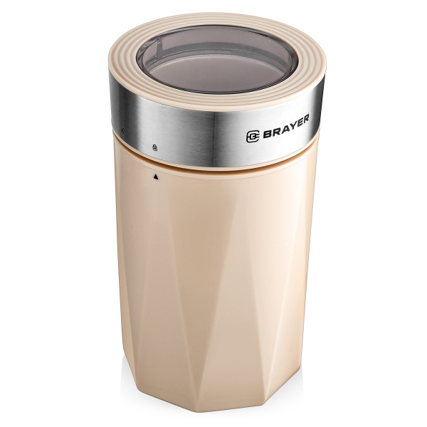Кофемолка электрическая Brayer 1189BR вместительностью 60 г имеет ротационный нож из нержавеющей стали. У нее предусмотрен 1 основной режим работы и импульсный. Управлять работой кофемолки удобно нажатием на одну кнопку. Продолжительность рабочего цикла составляет не более 30 сек, после этого прибору нужно будет немного отдохнуть. Корпус прибора выполнен из бежевого пластика. При снятой крышке Brayer 1189BR не включится. Для хранения сетевого кабеля в те моменты, когда прибор не используется, предусмотрен специальный отсек.