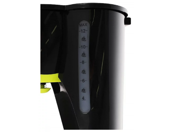 Модель оснащена обтекаемым корпусом, съёмной прозрачной чашей, индикатором работы, многоразовым фильтром. Мощность прибора составляет 800 Вт, что очень удобно для быстрого приготовления напитка. Предусмотрена функция поддержания температуры.