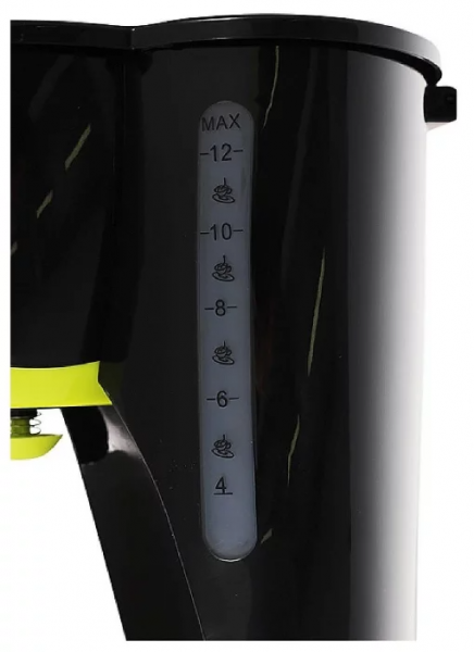 Модель оснащена обтекаемым корпусом, съёмной прозрачной чашей, индикатором работы, многоразовым фильтром. Мощность прибора составляет 800 Вт, что очень удобно для быстрого приготовления напитка. Предусмотрена функция поддержания температуры.