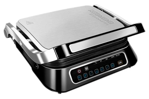 Гриль SteakMaster REDMOND RGM-M807 – современный мощный прибор «3 в 1», который готовит аппетитные блюда как в гриле, как в духовке и в барбекю-жаровне. SteakMaster RGM-M807 – это настоящий мастер по стейкам. С ним вы без труда приготовите идеальный рибай средней прожарки или сочный стейк с кровью. SteakMaster автоматически определяет толщину продукта и степень прожарки, вам остается только положить мясо или рыбу на панель и запустить приготовление. Специальные индикаторы на панели управления покажут, какого уровня прожарки достиг стейк. Благодаря постоянному высокому нагреву панелей до 240°С, мясо быстро прожаривается до хрустящей корочки, а внутри остается максимально сочным. Для приготовления мяса, рыбы, птицы и овощей в RGM-M807 предусмотрены автоматические программы. С их помощью вы легко приготовите домашние бургеры, аппетитные рубленые бифштексы, стейки из мяса и рыбы, колбаски и овощи на гриле. Вам нужно просто выбрать программу, разместить ингредиенты на панелях и нажать кнопку. Стейкмастер самостоятельно определит время приготовления продукта. В SteakMaster вы сможете быстро приготовить превосходные запеченные блюда. Съемные панели гриля выполнены из металла с антипригарным покрытием. На них вы можете готовить, используя минимум масла, или совсем не добавляя его. С SteakMaster даже жареные блюда будут более диетическими! Панели очень легко моются как под проточной водой с мягким моющим средством, так и в посудомоечной машине.