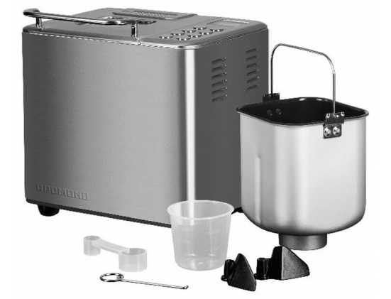 Комплектация - мерный стакан, лопасть для замешивания теста, хлебопечь, крючок для извлечения лопасти, книга «50 рецептов», мерная ложка