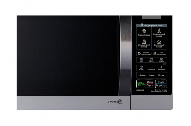 Дополнительная информация - LED-дисплей, внутреннее покрытие EasyClean, технология распределения микроволн i-wave, функция «Кухни мира», энергосберегающий режим Eco On