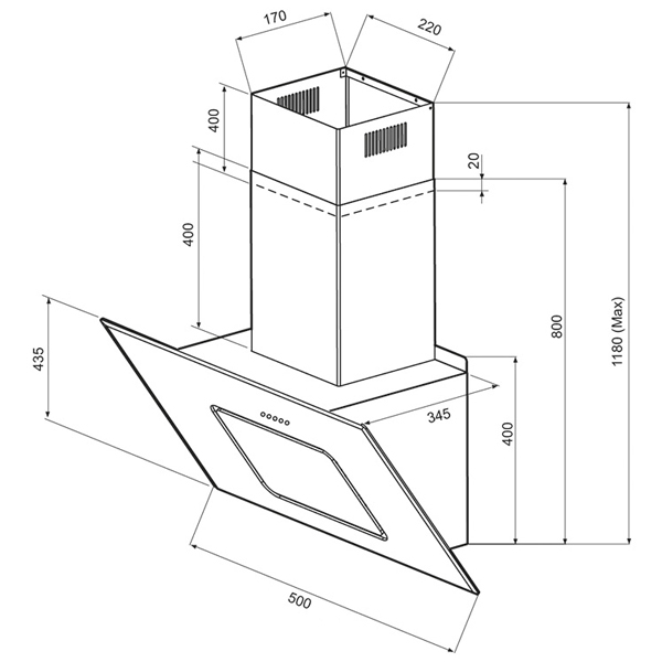 | Тип вытяжки | каминная, наклонная |