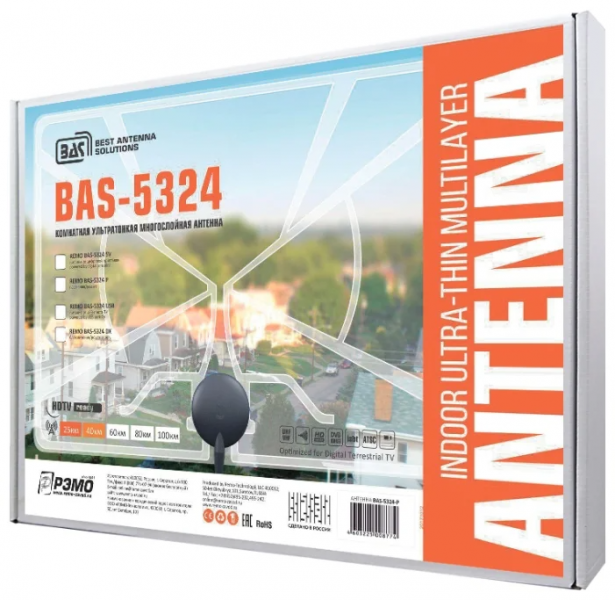 Комнатная пассивная телевизионная антенна BAS-5324-P предназначена для приема телепрограмм в высоком цифровом качестве в широком диапазоне частот.