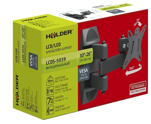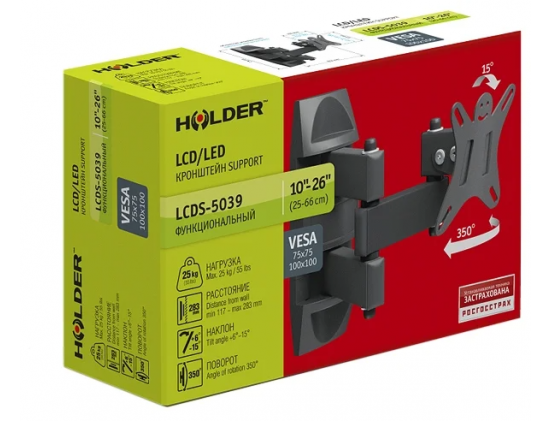 Кронштейн Holder LCDS-5039 Металлик 10"-26" макс.25кг настенный поворот и наклон