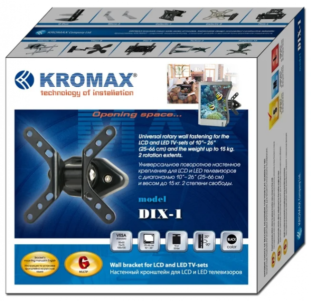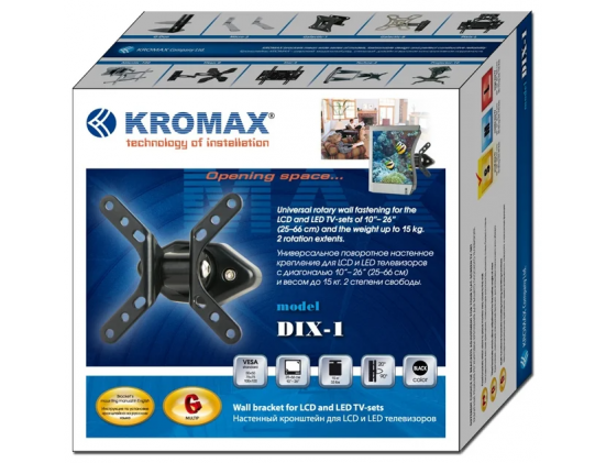 Кронштейн Kromax DIX-1 Серый 15"-26" макс. 15 кг настенный наклонно-поворотный