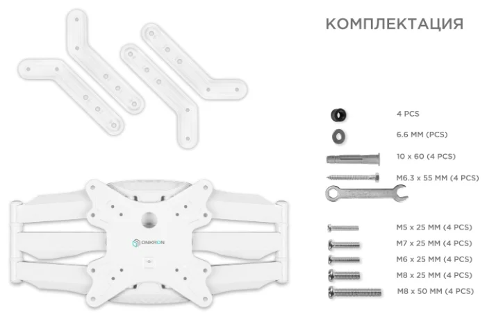 Кронштейн Onkron M5 Белый 32"-60" макс.36,4 кг настенный поворот и наклон