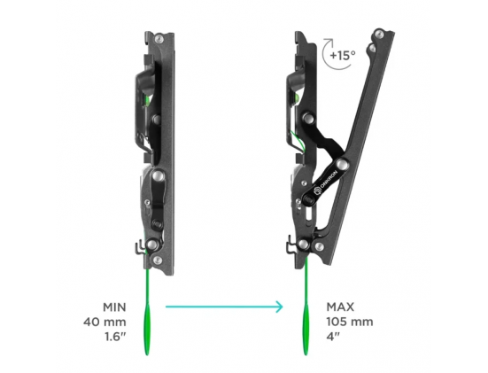 - угол наклона 0°+15°; вылет от стены 40-105 мм; встроенный уровень; система фиксации "Просто щелчок"; материал: холоднокатаная сталь (SPCC class)