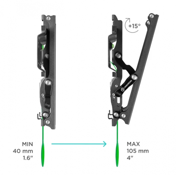 - угол наклона 0°+15°; вылет от стены 40-105 мм; встроенный уровень; система фиксации "Просто щелчок"; материал: холоднокатаная сталь (SPCC class)