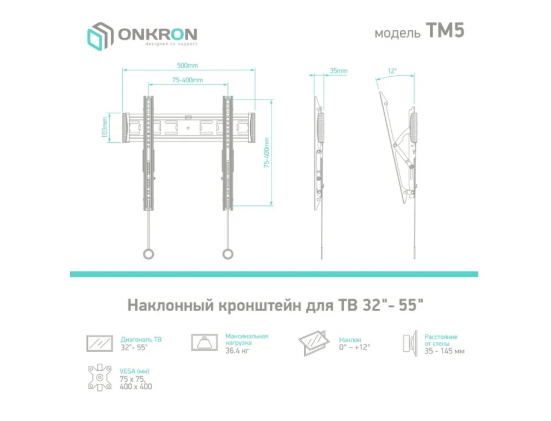Кронштейн Onkron TM5 Черный 32"-55" макс. 50 кг настенный наклон