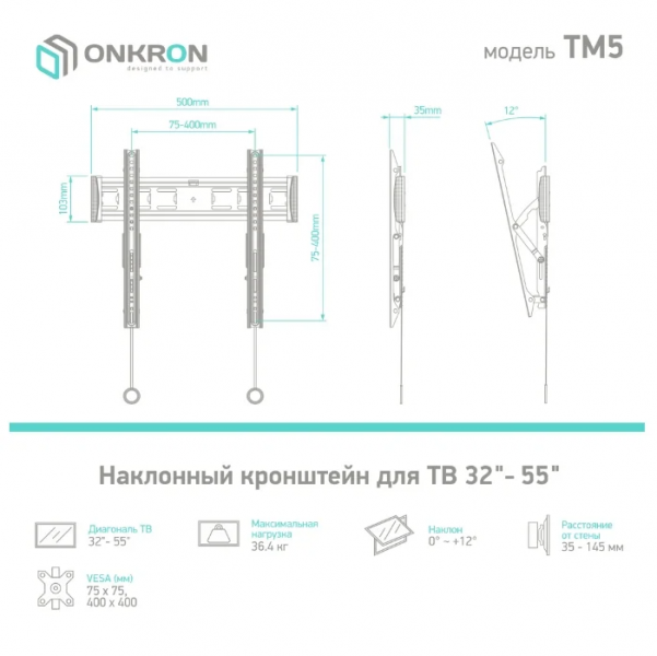 Кронштейн Onkron TM5 Черный 32"-55" макс. 50 кг настенный наклон