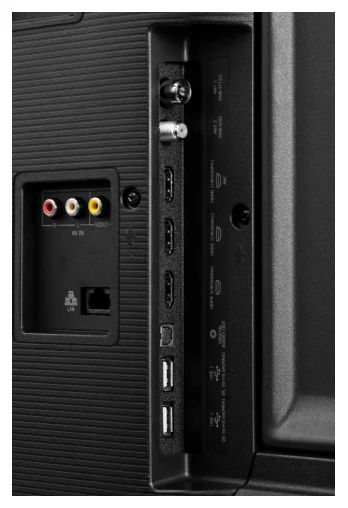 Разъемы и интерфейсы - AV-вход, Ethernet - RJ-45, композитный видеовход, вход HDMI x 3, USB Type-A x 2, слот CI/CI+, выход аудио оптический