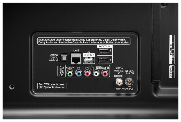 Входы - AV, компонентный, HDMI x4, USB x2, Ethernet (RJ-45), Bluetooth, Wi-Fi 802.11ac, WiDi, Miracast