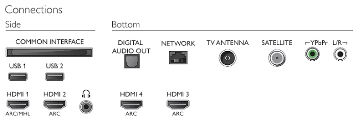 Входы - компонентный, HDMI x4, MHL, USB x2, Ethernet (RJ-45), Bluetooth, Wi-Fi 802.11n