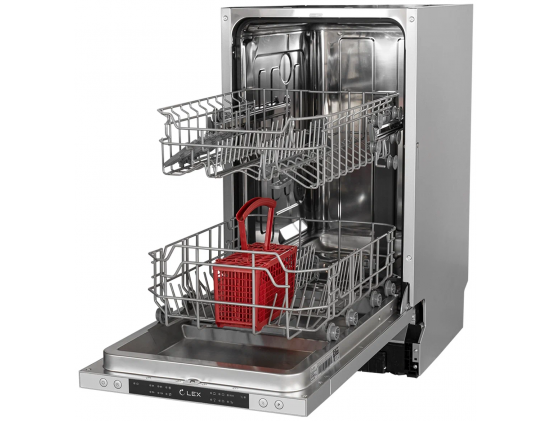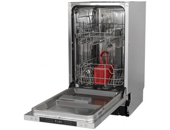 Особенности конструкции - внутренняя поверхность из нержавеющей стали, использование средств 3 в 1, регулируемая по высоте корзина для посуды
