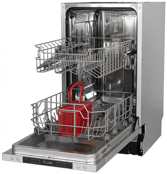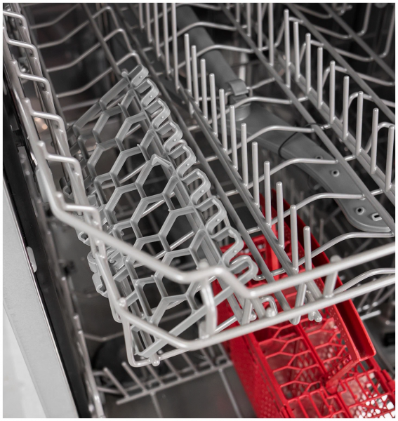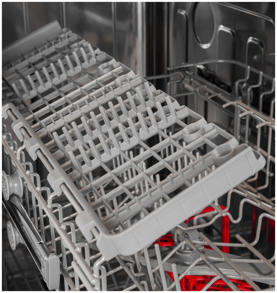 Особенности конструкции - внутренняя поверхность из нержавеющей стали, использование средств 3 в 1, регулируемая по высоте корзина для посуды